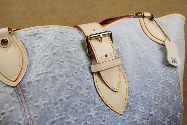 With a generous interior and luxurious cowhide leather trimmings, the Sunbeam is practical yet feminine. Its Monogram Denim fabric reinvents the iconic Monogram pattern with radiant shades of colour.