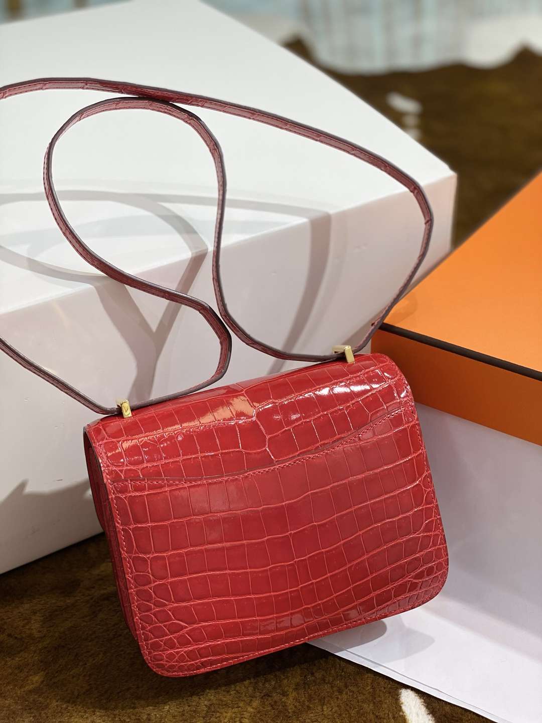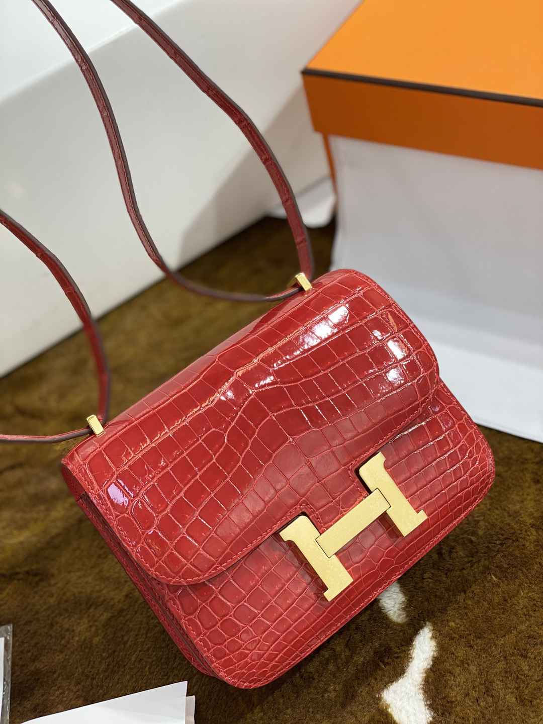 Hermes Constance 19 shiny Niloticus Crocodile U8 Bronze Dore GHW