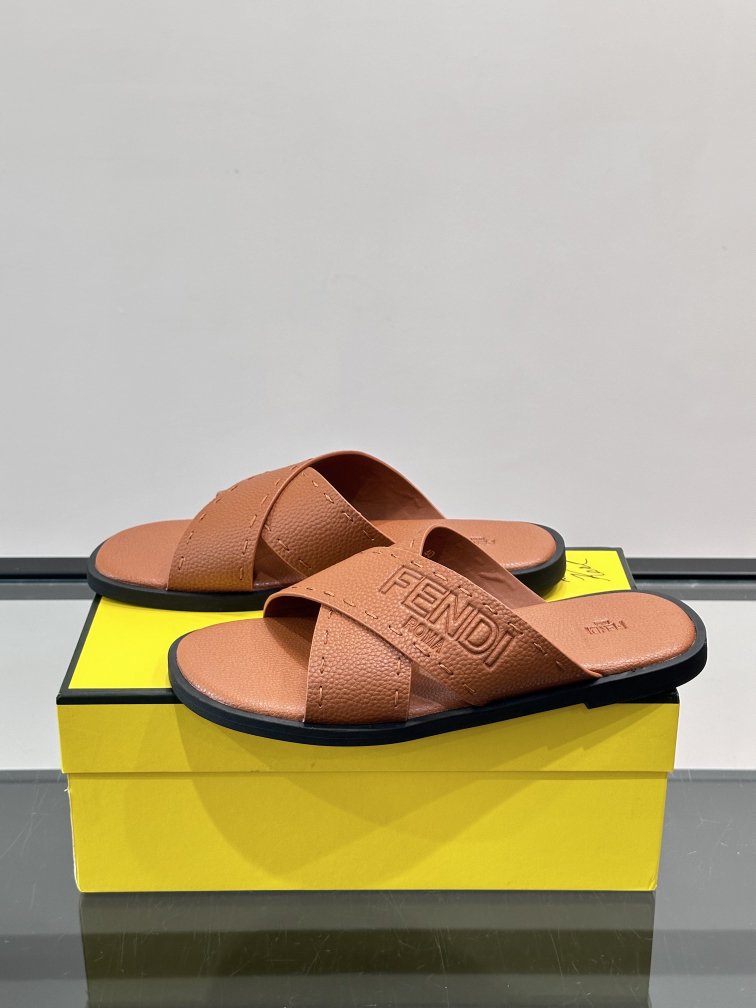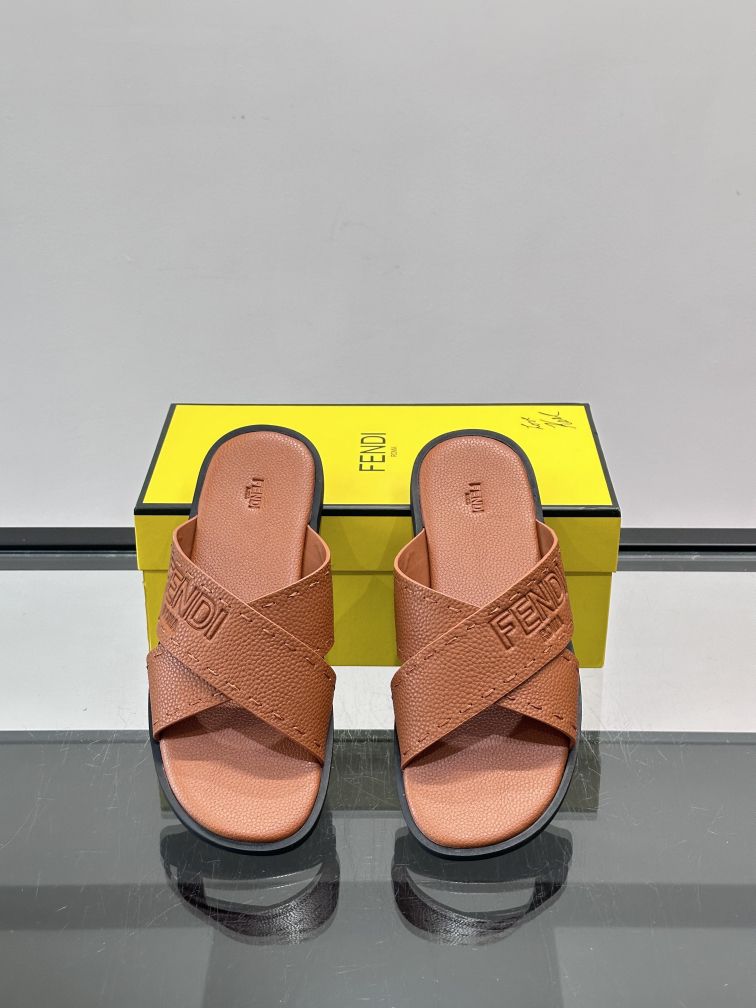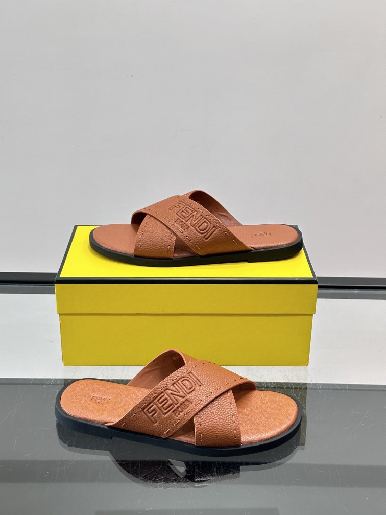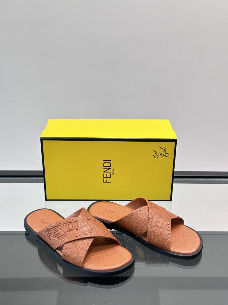 FENDI's new embossed sandals and sandals, leather fabric and leather feet. Fashionable, stable and atmospheric shoe shape is very flexible and comfortable, rubber non-slip outsole