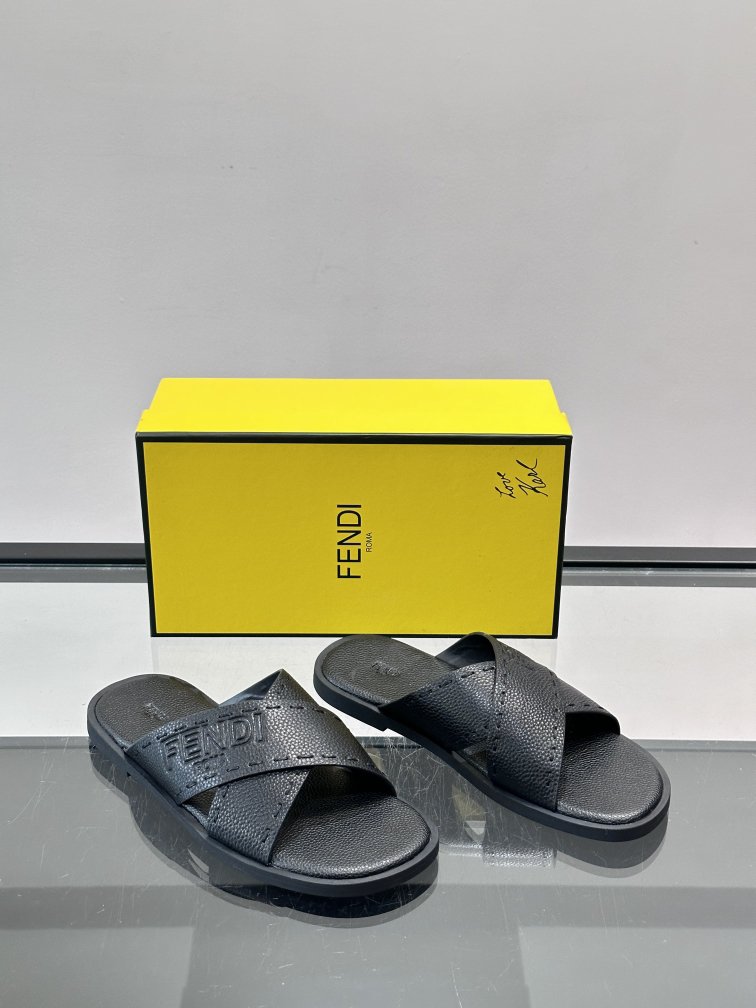 FENDI's new embossed sandals and sandals, leather fabric and leather feet. Fashionable, stable and atmospheric shoe shape is very flexible and comfortable, rubber non-slip outsole